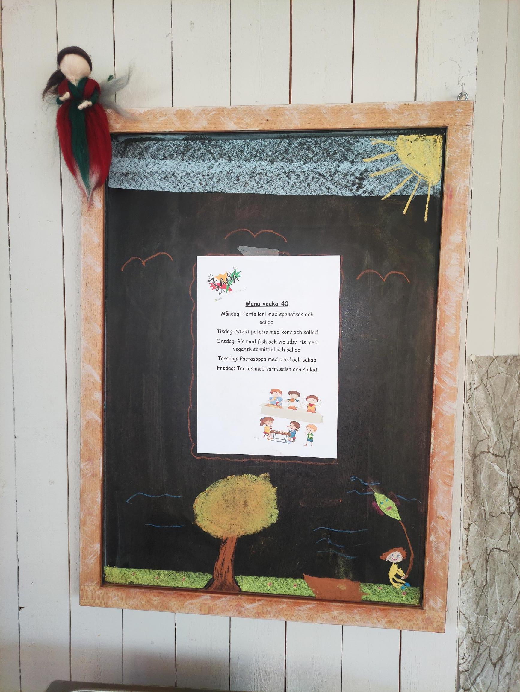 Maten på Annaskolan lagas på plats av vår husmor. som utgår från säsong, barnvänligt och färskt. Det finns alltid flera olika sallader och ett vegetariskt alternativ på menyn.